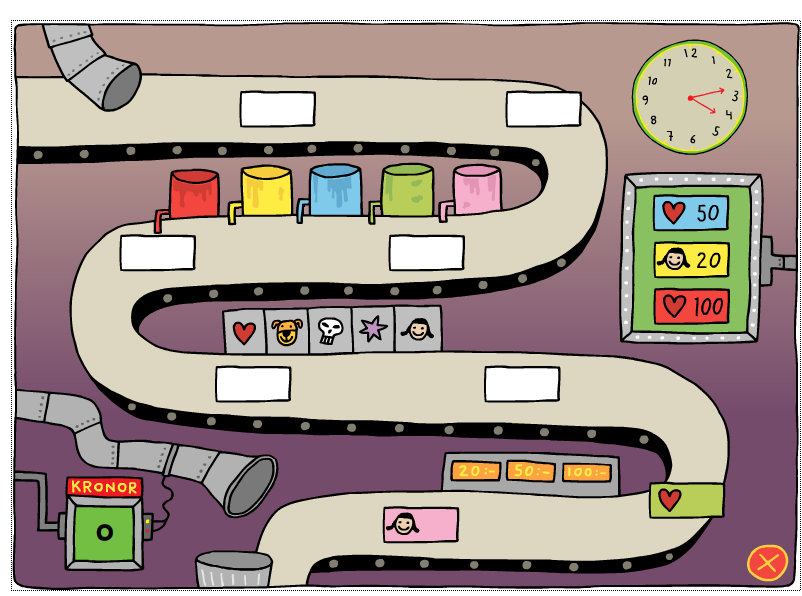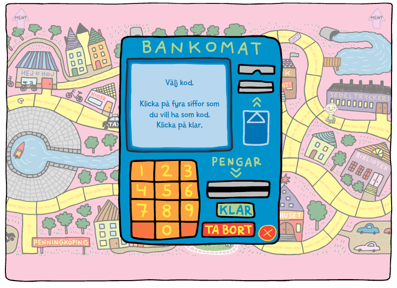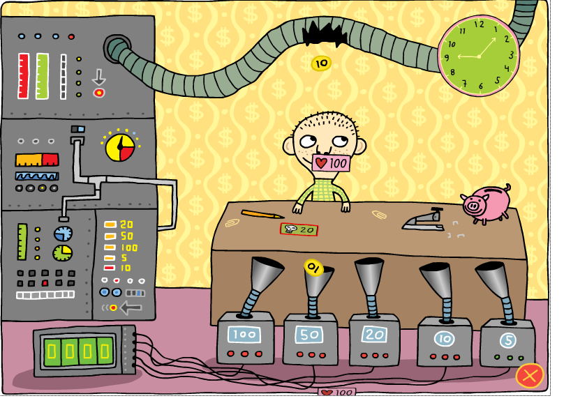 Pengar – webbplats för åk 3 och uppåt. Uppdragsgivare: UR Uppdrag: konceptutveckling, projektledning, redaktörsjobb. Illustratör: Jojo FalkHjälp till att sortera pengarna i banken.En webbplats om pengar. När du sparat ihop pengar, kan du ta ut dem i bankomaten.Mata djuren i zooaffären innan affären stänger.Tryck nya pengar i sedeltryckeriet.