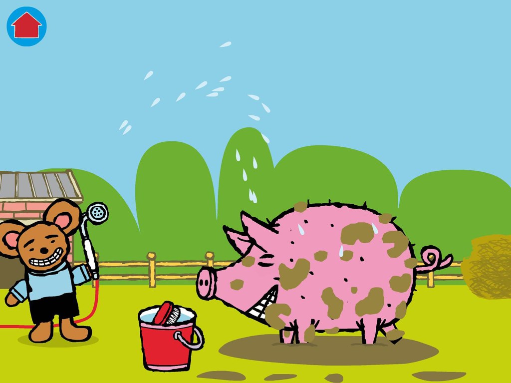 På bondgården finns det många djur som vill ha mat. Vem ska ordna det om inte Pino, Pinolina och Pingvinen! Hjälp till att mata, tvätta, borsta och ta hand om bondgårdsdjuren. När arbetet på gården är klart, börjar det kurra i magen på djurskötaren också.
