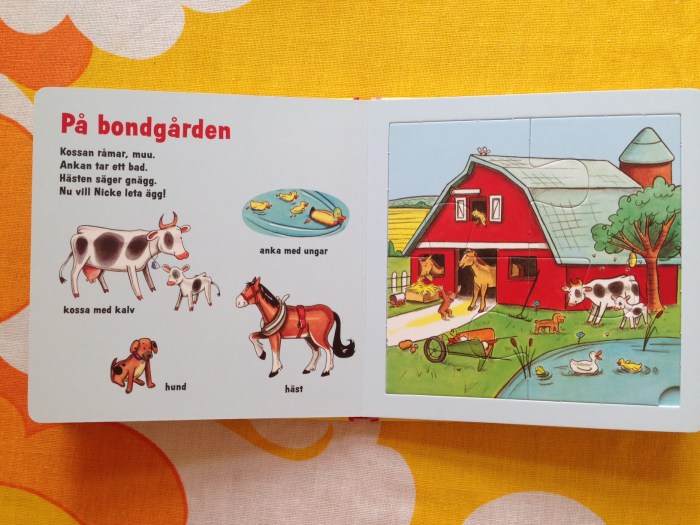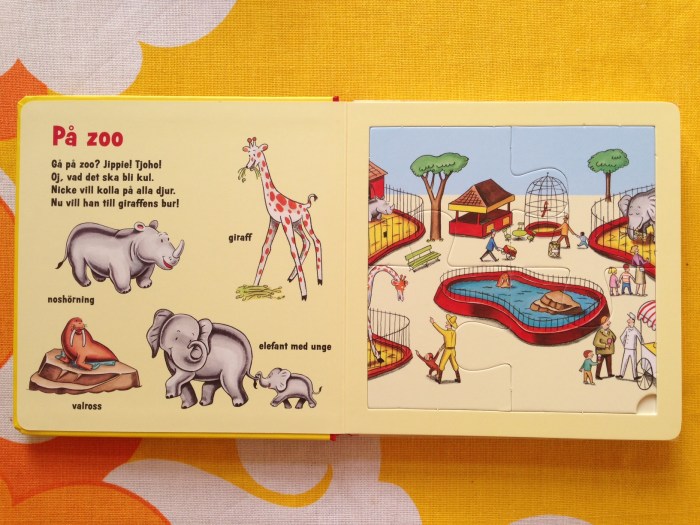 Översättning av pusselboken Nicke Nyfiken Djur – pussel och rim för Rabén & Sjögren.